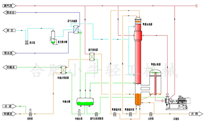 MVR降膜蒸發(fā)器工藝流程: